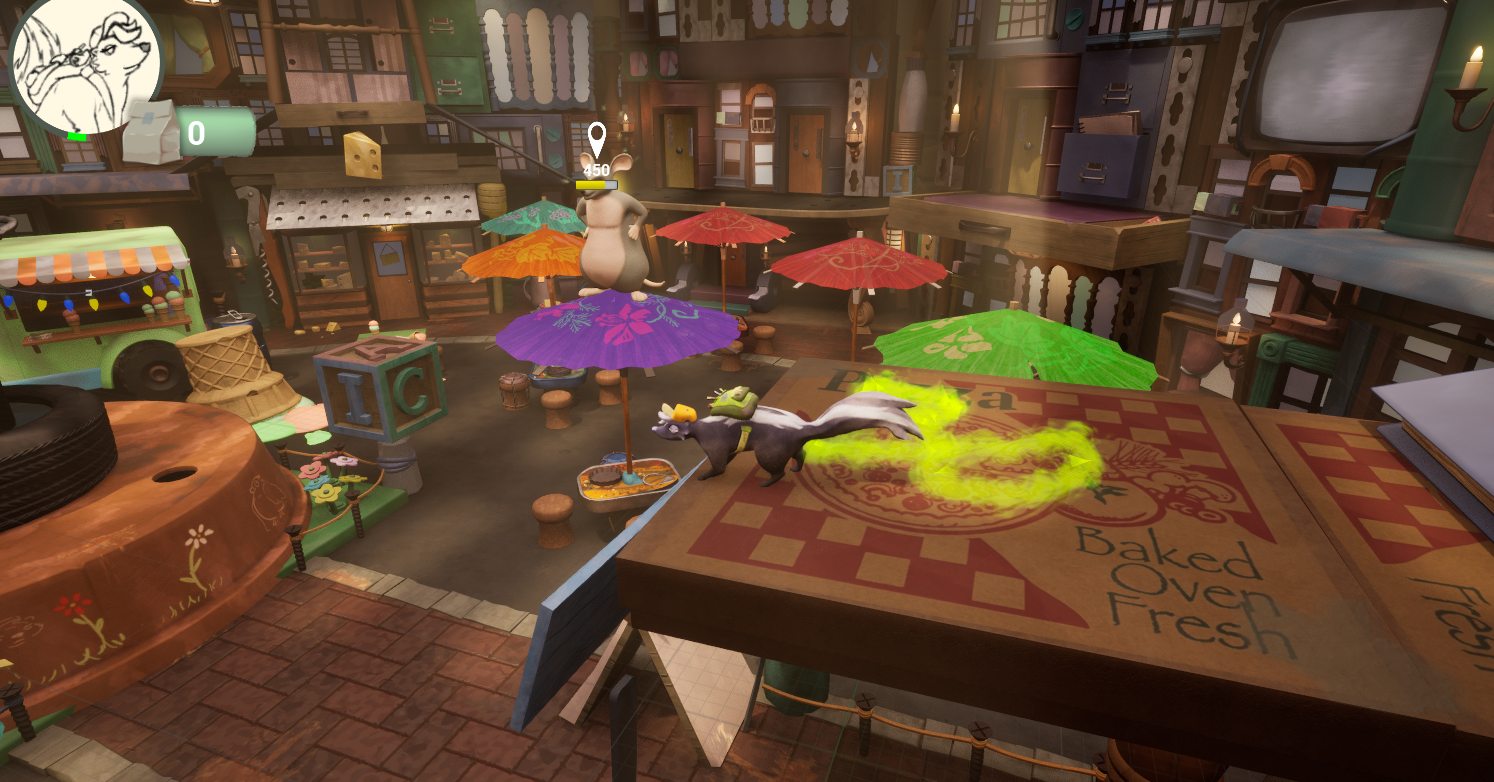 Deliver food as a skunk in the sewers—fast, careful, and smelly.